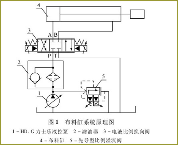 粉煤灰磚機的布料缸系統(tǒng),其動力源為力士樂HD. G液控泵,排量V與先導(dǎo)壓力X,成正比例關(guān)系,X,由控制系統(tǒng)的比例溢流閥調(diào)定,X,工作區(qū)間為1一2 MPao HD. G液控泵的可達(dá)流量為364 L/min。